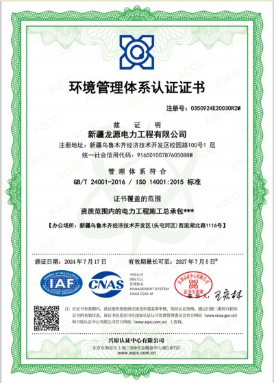 環(huán)境管理體系認(rèn)證證書